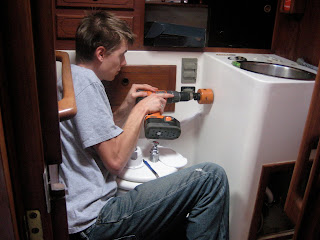 We spent the weekend getting a few new parts installed for liveaboard necessities. For some reason the former owner removed the shower system, but no worries Matt was able to install a more space and water efficient design that works perfectly for us.